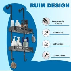 WITTS Doucherek – 2 Laags – Doucherek Zonder Boren – Doucherek Hangend – Doucherekje – Roestvrijj