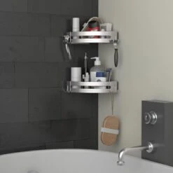 RVS Doucherek Zelfklevend Zonder Boren – Douchemand Hangend – 15KG Draagvermogen – Zilver/Chroom