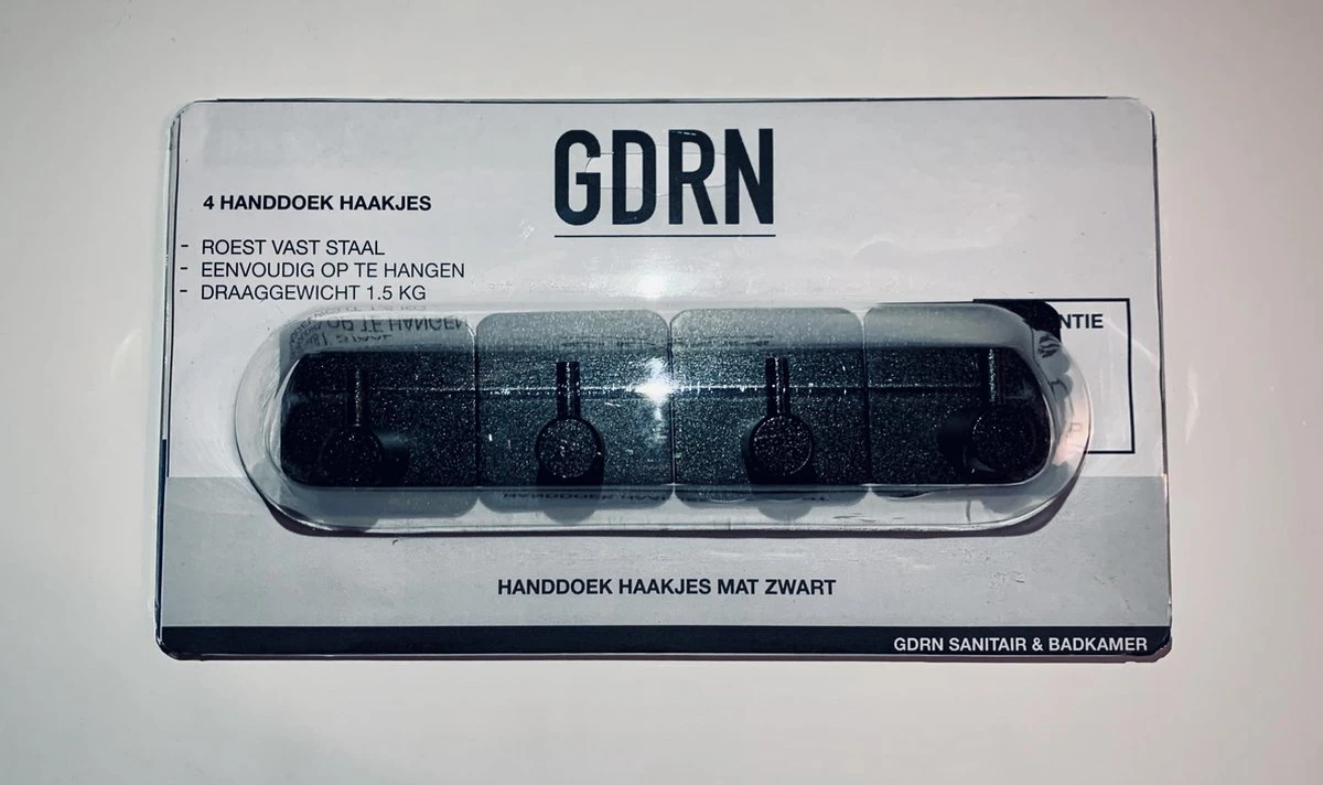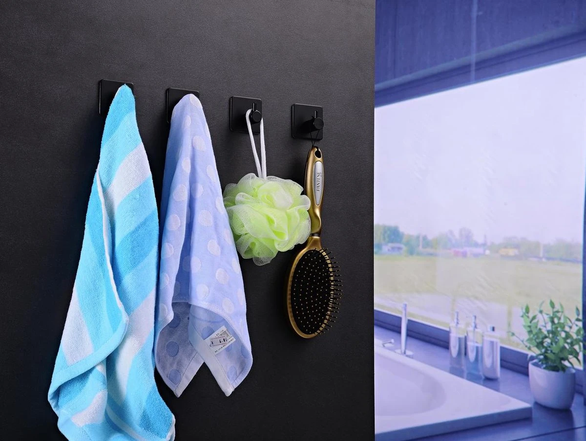 GDRN Mat zwarte handdoek haakjes – 4 stuks per verpakking