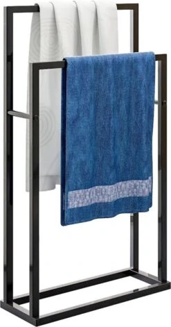 GDRN staande handdoekhouder. Dit stijlvol onworpen handdoekrek is zeer functioneel in gebruikt. Het kan voor kleding, handdoeken en andere hangende producten gebruikt worden. Daarnaast past het tijdloze design in vrijwel elk interieur!