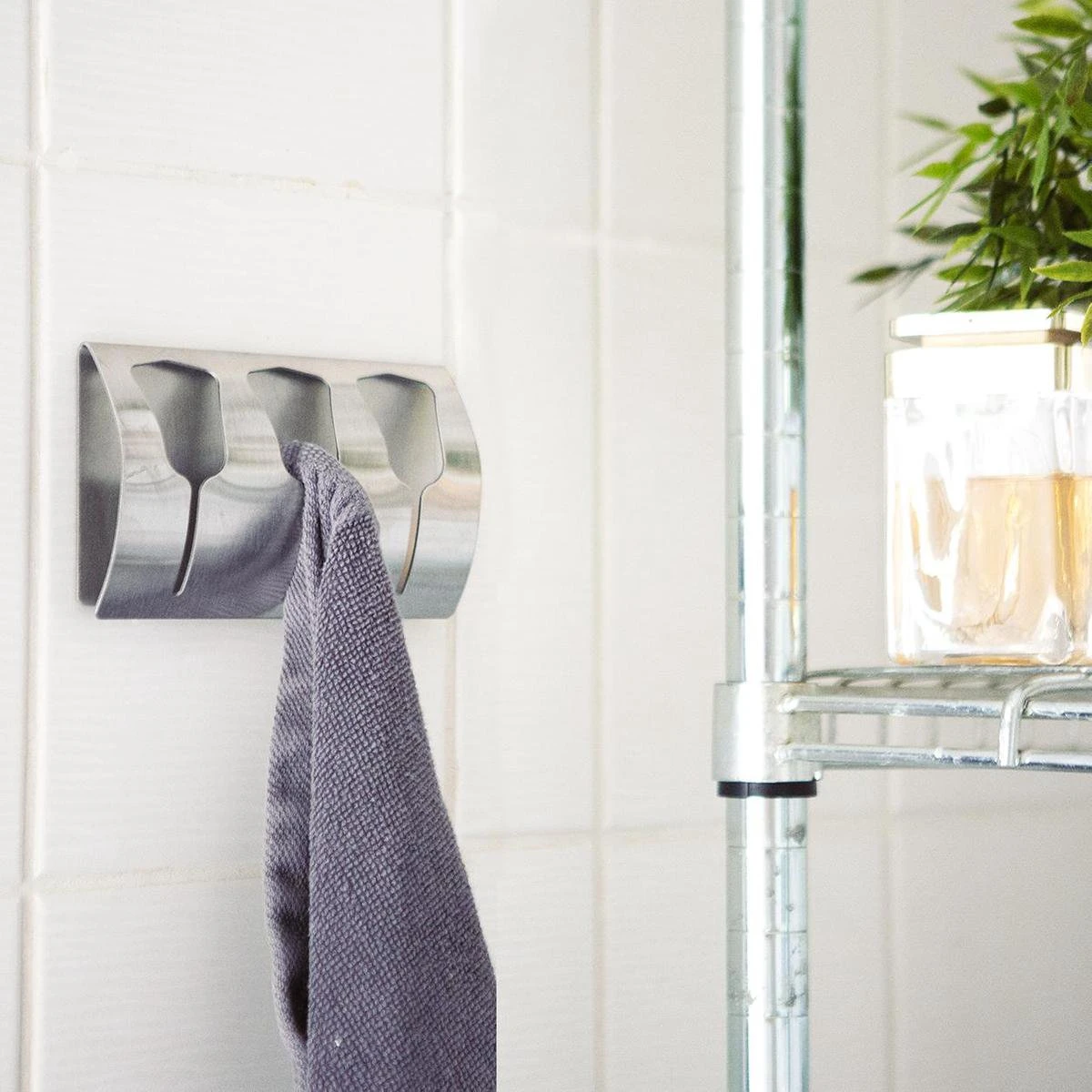 LifeGoods Handdoekhaakjes – Zelfklevend – Voor 3 Handdoeken – Handdoekklem – RVS – 1 Stuks