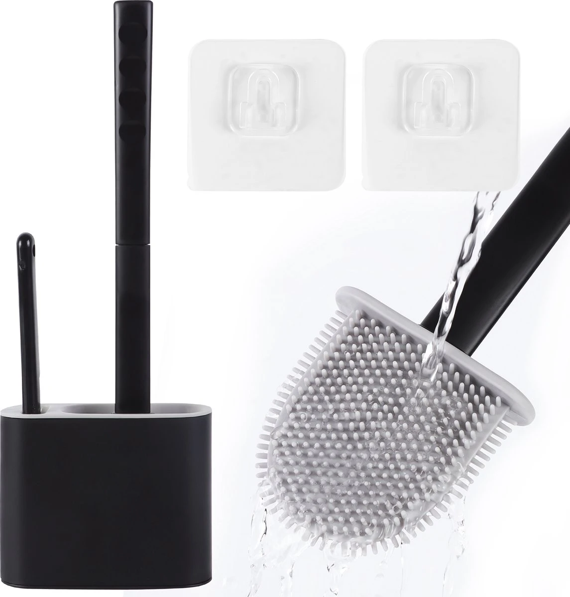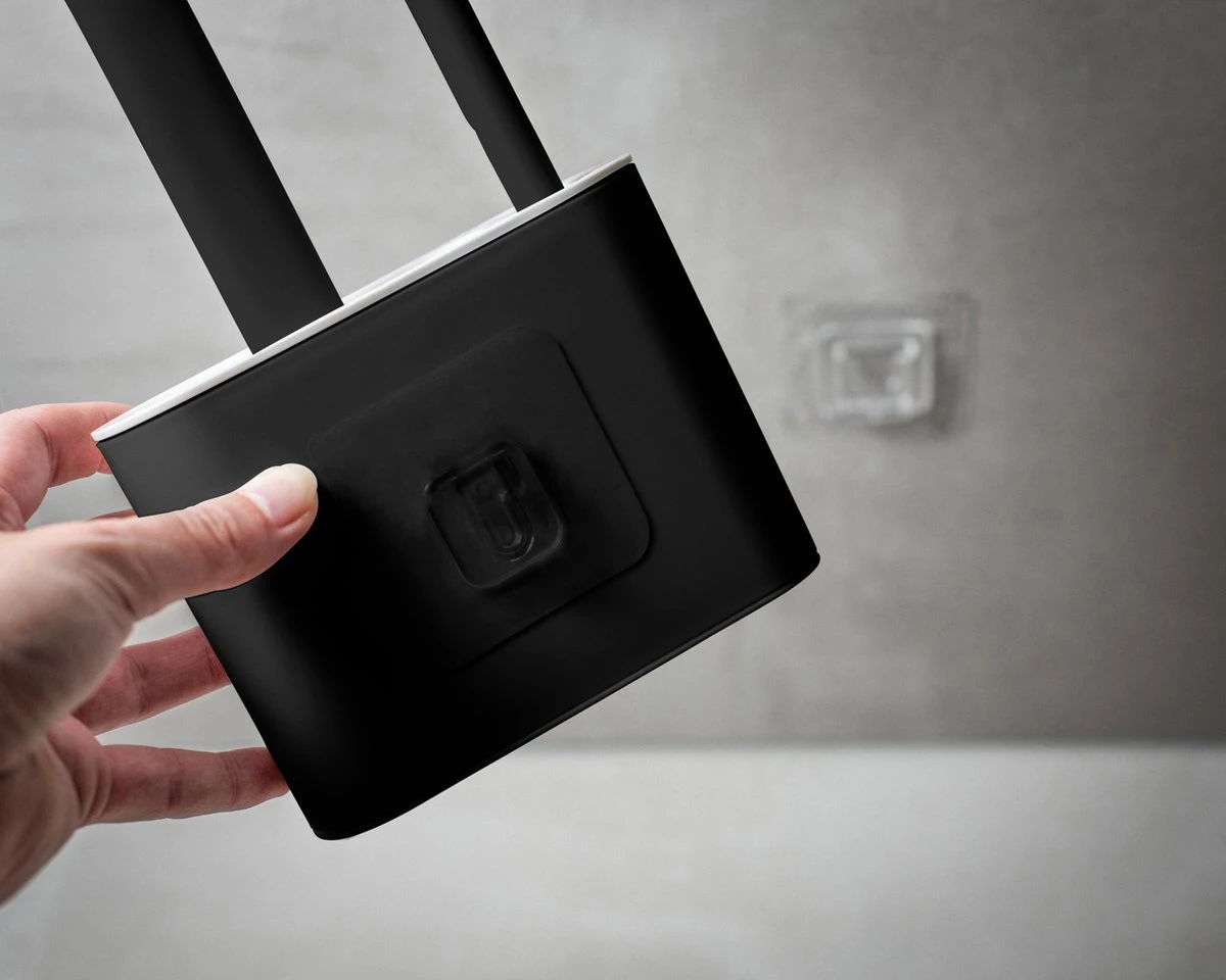 Deze WC borstel beschikt dus over een hoogwaardig siliconen uiteinde die flexibel meebuigt in al uw inhammen en plekken waar u met een gewone WC borstel niet bij zou komen. Daarnaast kunt u de houder hangen aan de muur met een plakstrip systeem waardoor hij nog altijd te verwijderen is maar hij ook muurvast zit wanneer u het in het systeem schuift. Het plakstripje is voorzien van een uitermate sterk adhesief die semi oneindig vast blijft zitten aan uw muur. Maakt u zich geen zorgen want mocht u het stripje toch willen verwijderen blijft er geen spoor van een lijmrest over!