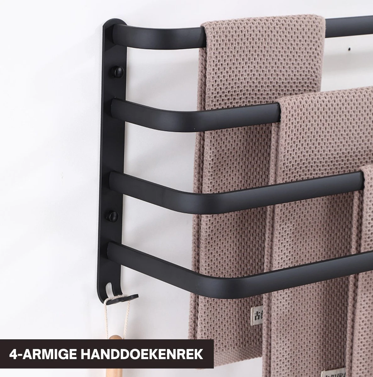 De nieuwste versie handdoekhouder om extra ruimte te creeeren ! Geef je badkamer een nieuwe look met deze prachtige 4-armige handdoekenrek van Liviner®. De stevige armleuning biedt plaats aan meerdere handdoeken,vaatdoeken en washandjes en vult de ruimte rondom de wastafel optimaal. Maak jouw badkamer daarom compleet met deze prachtige handdoekhouder van Liviner®.