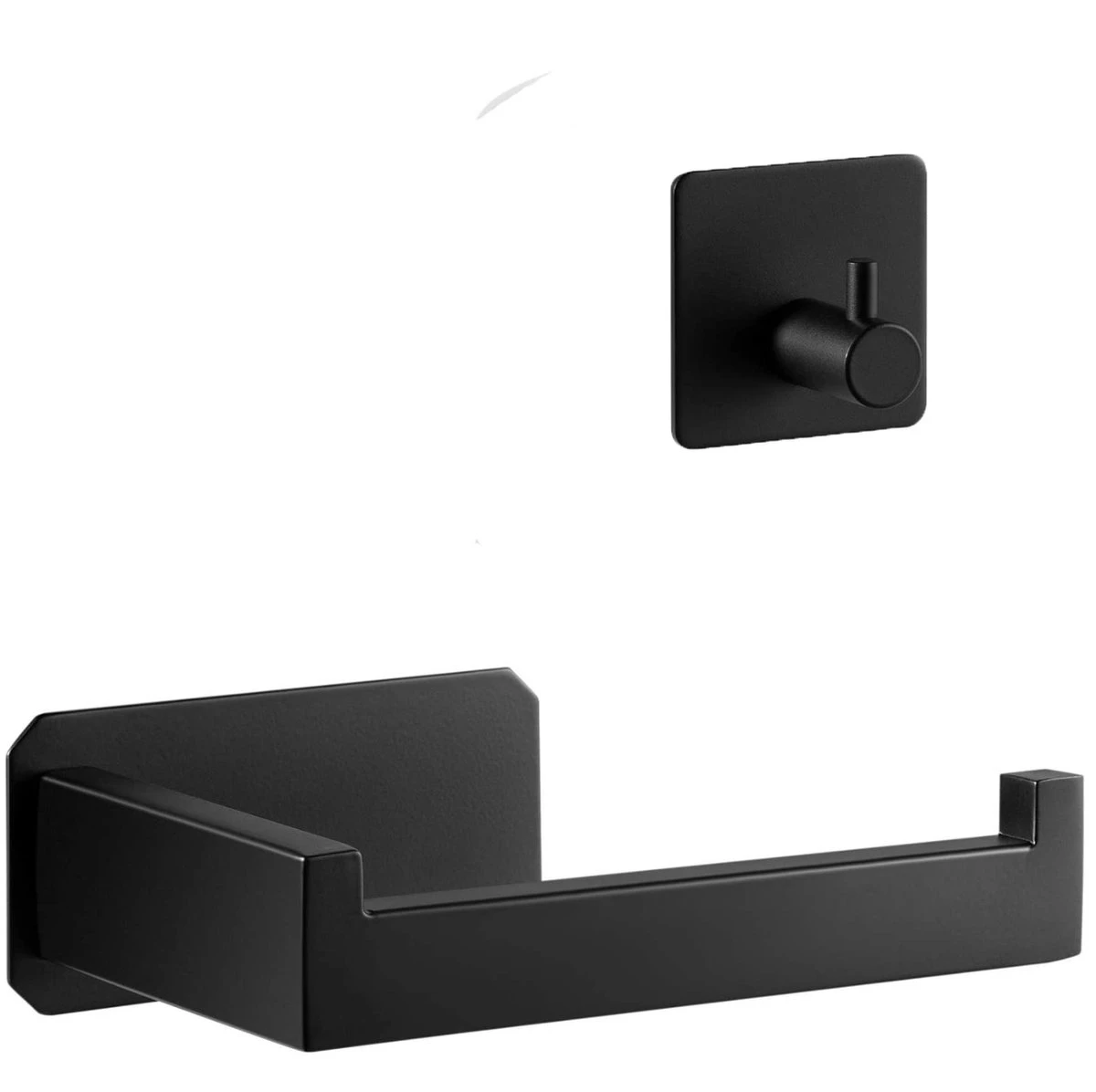 Geen ongewenste gaten en beschadigingen meer aan de muur met deze zelfklevende toiletrolhouder! De houder is uitgerust met een matzwarte afwerking voor een stijlvolle, moderne look en past daarom makkelijk in ieder interieur. Dankzij het zelfklevende systeem is de toiletrolhouder eenvoudig te monteren in minder dan één minuut. Bijgevoegd krijg je een gratis haak met een matzwarte finish om het interieur van je toilet of badkamer compleet te maken. Krijg dus meer waarde uit je geld!