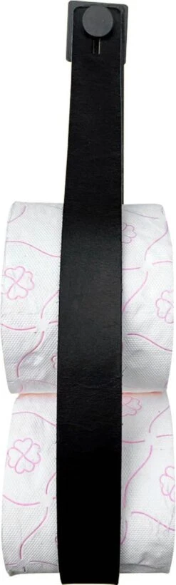 Luxe Leren Toiletrolhouder – Zwart – Reserverolhouder – 100% Volnerfleer – Hangend – Zonder Boren – WC Rol Houder – Closetrolhouder