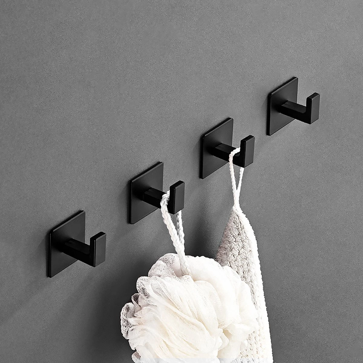 Stål Handdoekhaakjes Zelfklevend Zwart – Vierkant – 4 Stuks
