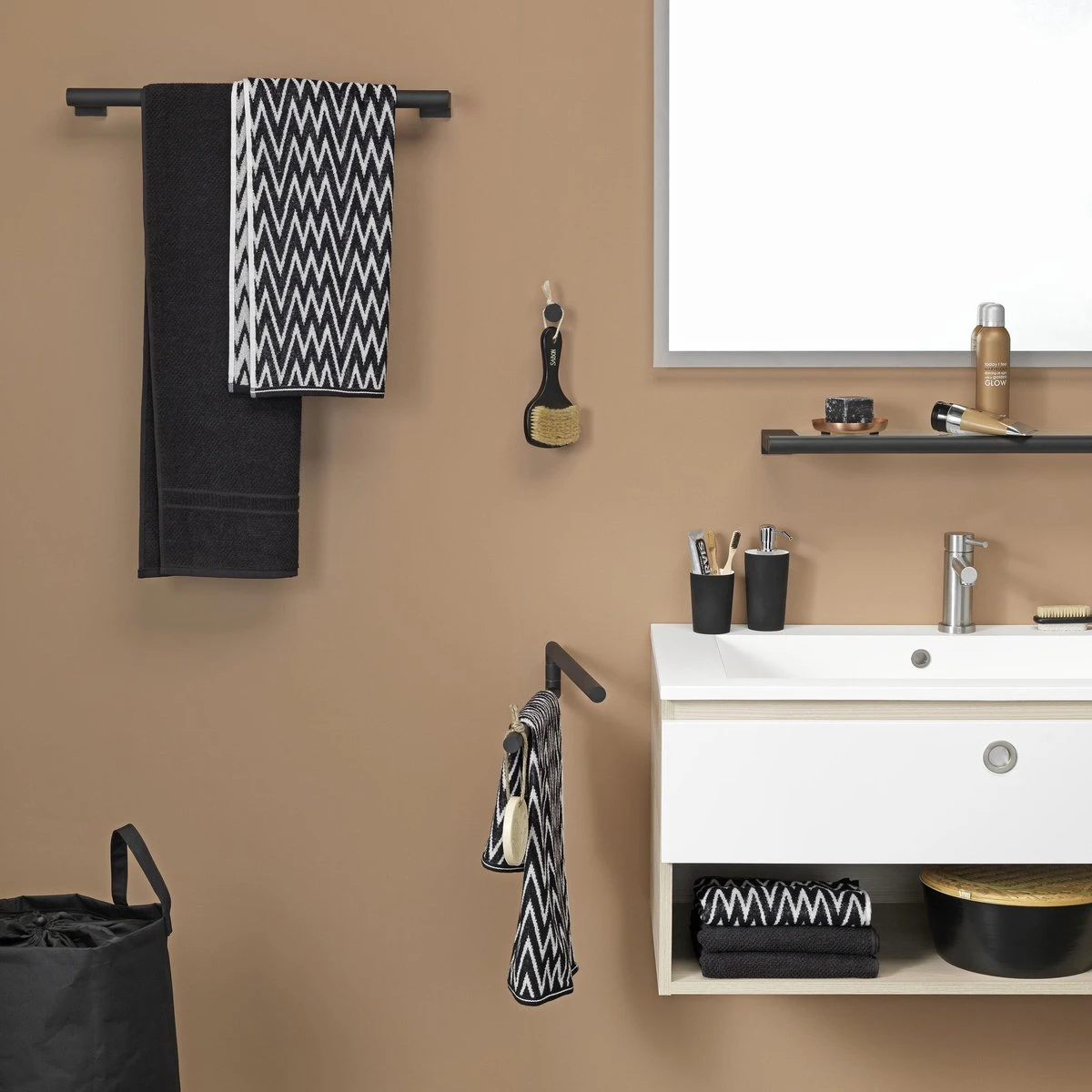 De Tiger Bold haak medium is uitgevoerd in de kleur mat zwart. De haak is eenvoudig aan de wand te bevestigen met de bijgeleverde bevestigingsmaterialen. Door de slimme constructie van de haak zijn de bijgeleverde bevestigingsmaterialen niet zichtbaar na montage. Het assortiment van de Bold accessoire serie bestaat daarnaast uit een groot aantal aanvullende accessoires voor badkamer en het toilet.