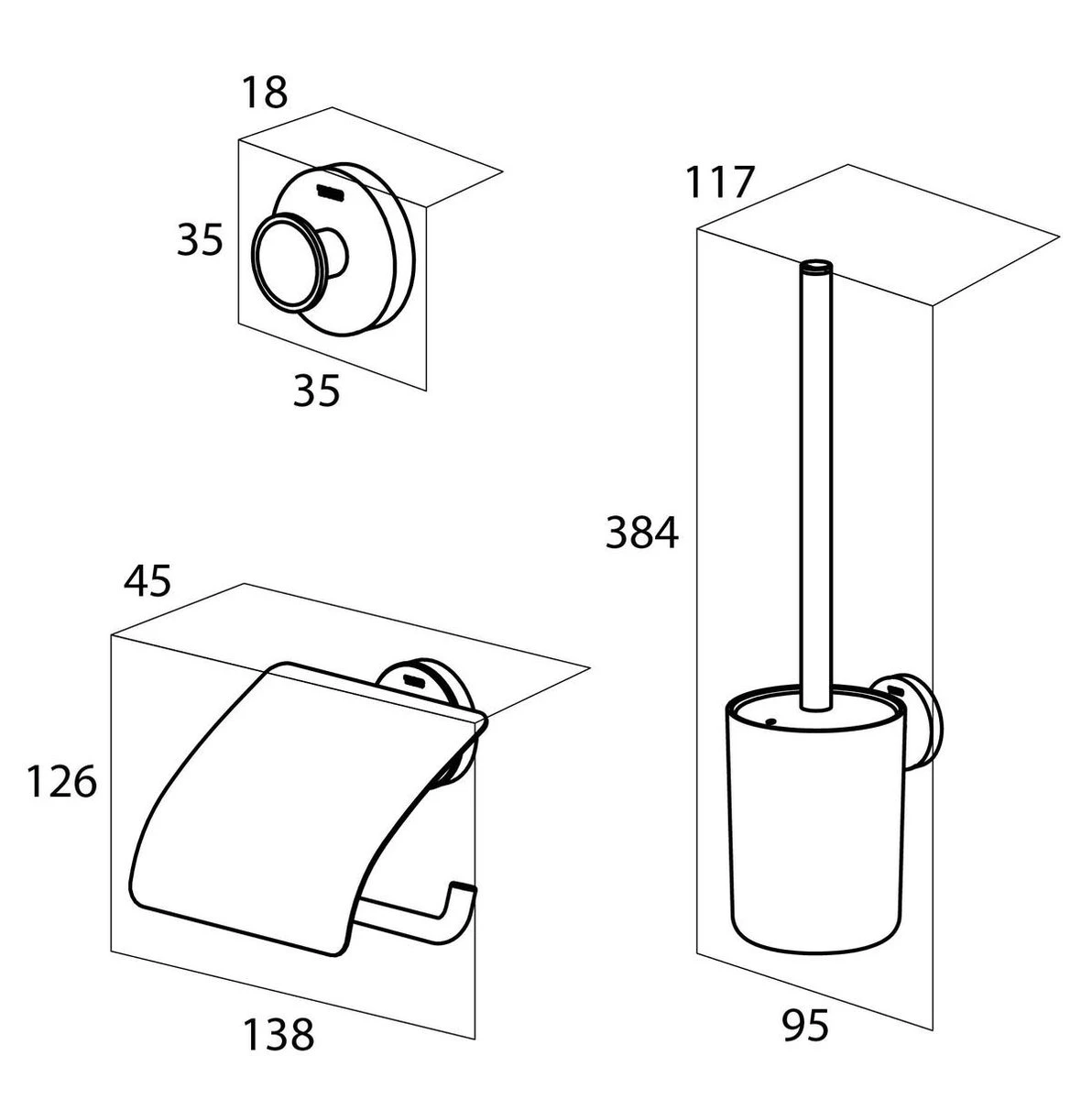 • Complete set: handdoekhaak, toiletrolhouder met klep en toiletborstelset
