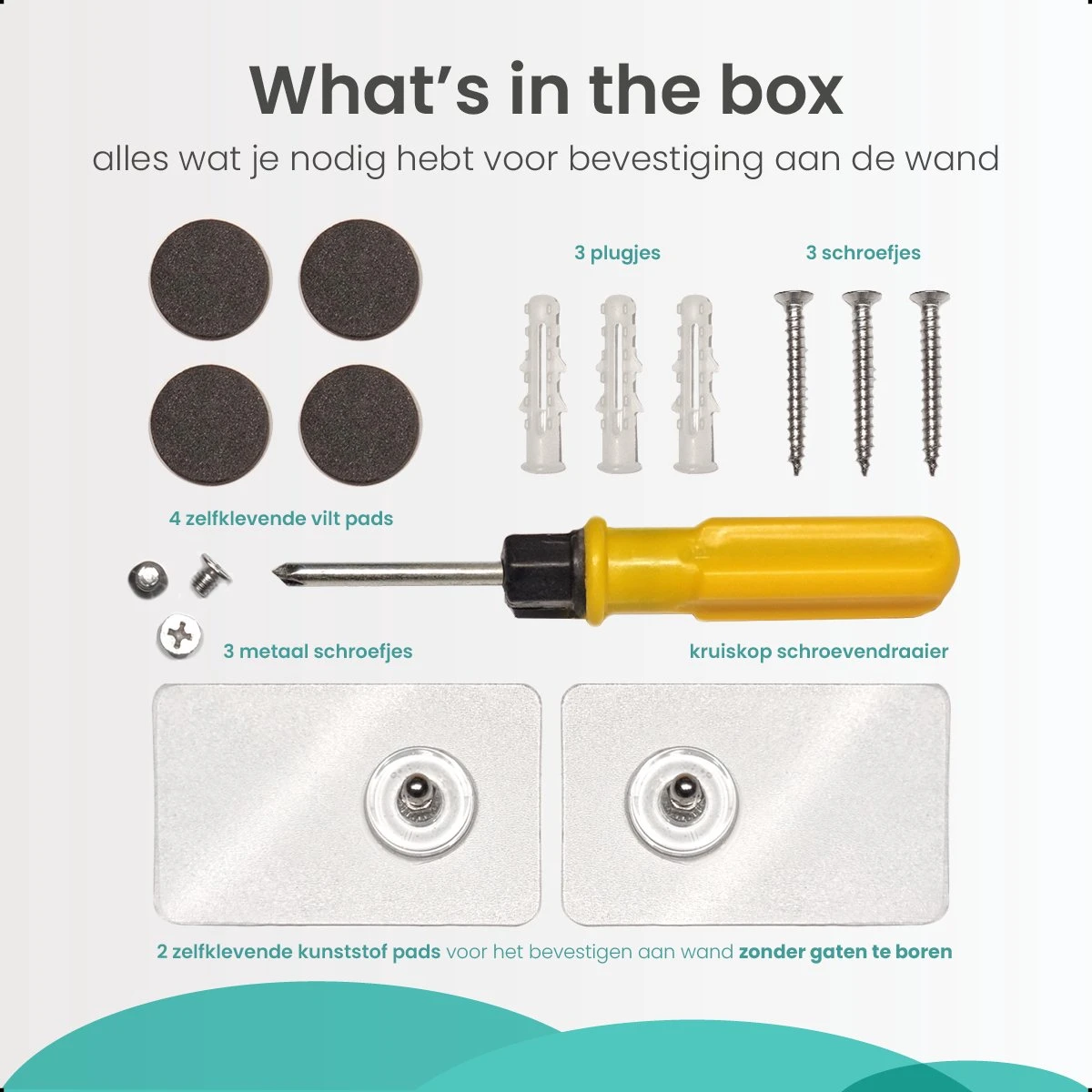 · Eenvoudige montage – De toiletrolhouder wordt met alle benodigde bevestigingsmaterialen geleverd en is daarnaast zeer eenvoudig en snel op te hangen. Het enige wat je hoeft te doen is de schroeven door de openingen van het bakje in de muur te plaatsen en de houder is al klaar voor gebruik!