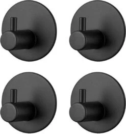 Trendfield Handdoekhaakjes Zelfklevend Rond – 4 Zwarte Handdoek Haakjes – Ronde Handdoekhaak – Zwart