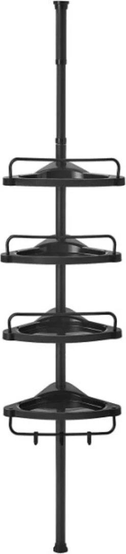 Niets zo onhandig als steeds te moeten bukken om de douchegel te grijpen, toch? Kies voor dit 4-delig schap en vermijd dergelijk ongemak! Het eerste grote voordeel van dit doucherekje schuilt in zijn vele niveaus. Een groot gezin, waar meerdere personen dezelfde douche gebruiken komt vaak niet toe met één schap. Hetzelfde geldt voor iemand met een iets grotere verzameling aan producten. Voortaan hoeft dat ook geen zorg meer te zijn. Speel met de lengte, plaats de waterdoorlatende plankjes waar je maar wilt en creëer een geheel dat comfortabel is voor jou. De telescopische buis wordt op zowel vloerhoogte als plafondhoogte vastgemaakt.