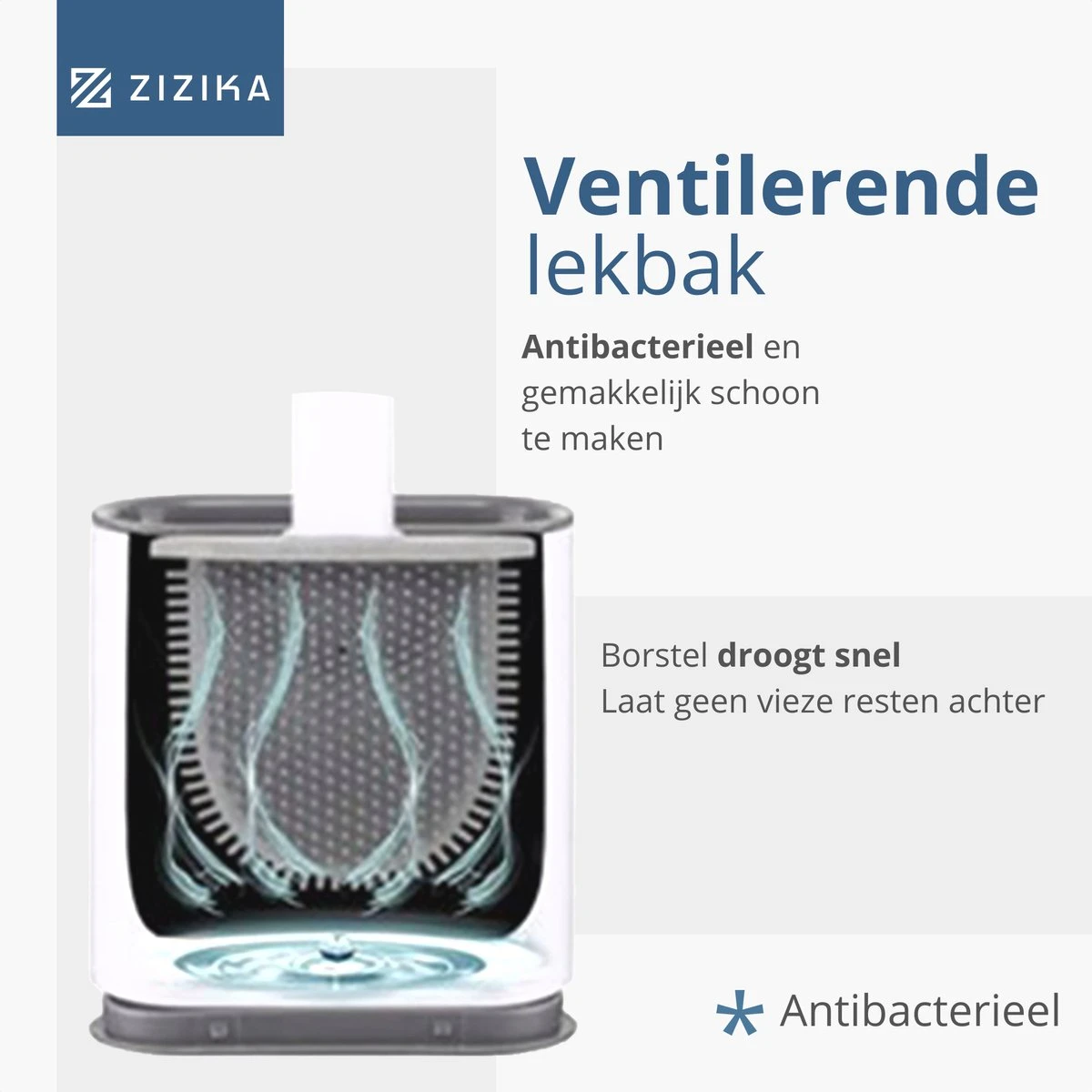 Ventilatie – Dankzij een slim ventilatieontwerp kan de houder van zowel boven- als onder het water verdampen. De borstel blijft hierdoor fris en hygiënisch, maar ook het toilet blijft blinkend schoon!